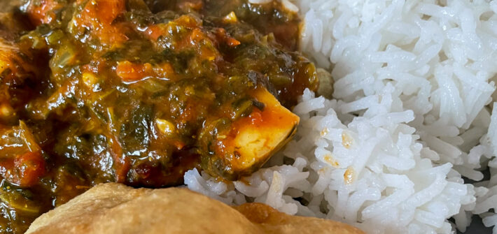 Spinat-Tomaten-Curry mit Bhatura