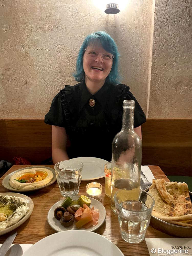 Zu Fuß haben wir uns auf dem Weg ins Bubala gemacht. Im Bubala Soho war ich ja bereits und wusst so ungefähr, was uns erwartet. Wir haben uns, wie bereits K2 und ich im April, für das Sample Menu Bubala Knows Best plus Nachtisch entschieden. War geil, bis auf ein Gericht. War aber kein Problem kam ziemlich zum Ende und eigentlich waren wir satt. Die Bedienung hat sich tatsächlich über unser Feedback dazu gefreut, da die Küche wohl immer mal wieder was neues probiert und Feedback ist da hilfreich. Wir konnten beobachten, andere Gäste waren auch nicht begeistert. Aber das Meiste ist leider geil, meine Favoriten: Labneh, confit garlic, za’atar – Oyster mushroom skewer – Smacked cucumbers, tahini, chilli crunch – Confit potato latkes, toum, Aleppo chilli.