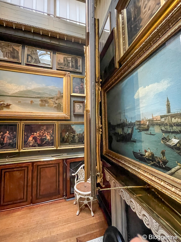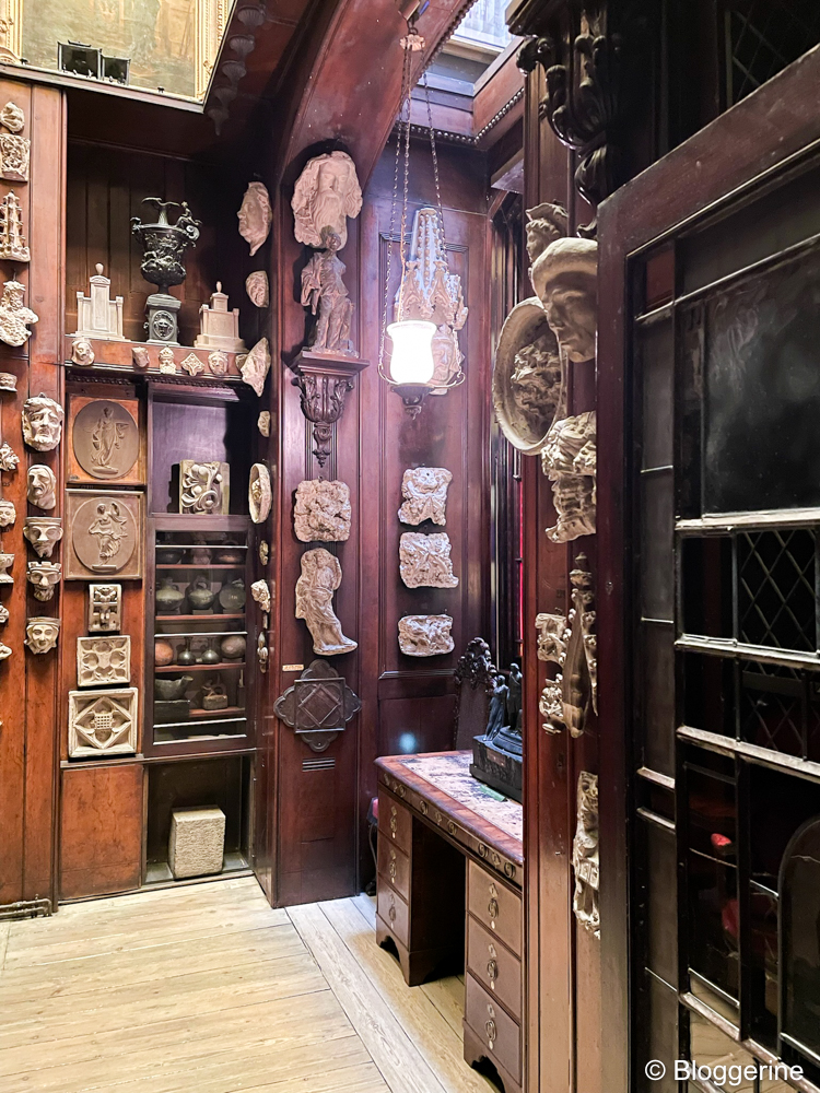 Zu Fuß, am Horse Guard vorbei, es waren leider keine Pferd da, ging es zu Sir John Soanes Wohnsitz. Das Sir John Soane’s Museum sind die beiden Wohnhäuser des englischen Architekten, die seit seinem Tod 1837 nicht verändert wurden. Hier darf nichts angefasst werden, außer natürlich im Visitorbereich. Wir haben an der Highlights Tour teil genommen. Kann ich für jeden empfehlen, der das Museum zum ersten Mal besucht. Sonst wäre ich völlig überfordert gewesen. Es gibt so viel zusehen. Ich hätte wahrscheinlich nichts verstanden. Warum sind die Räume für die viktorianische Zeit so groß? Warum steht da ein Sarkoph und wie passen über 100 Gemälde in den winzigen Raum? Wobei die Info über die Anzahl hat man gar nicht, außer man macht die Tour. Weiterer Vorteil: man muss nicht Schlange stehen, um in das Haus zu kommen, da die Tour ja terminiert ist. Der Eintritt ist frei. Die Tour ist nicht kostenlos, auf maximal 15 Personen beschränkt und findet immer Mittags statt. Toiletten gibt es und einen kleinen Shop, sowie die Möglichkeit kleine Taschen und Jacken abzugeben. Will man was mit reinnehmen, muss es in einer durchsichtigen Plastiktüte getragen werden.